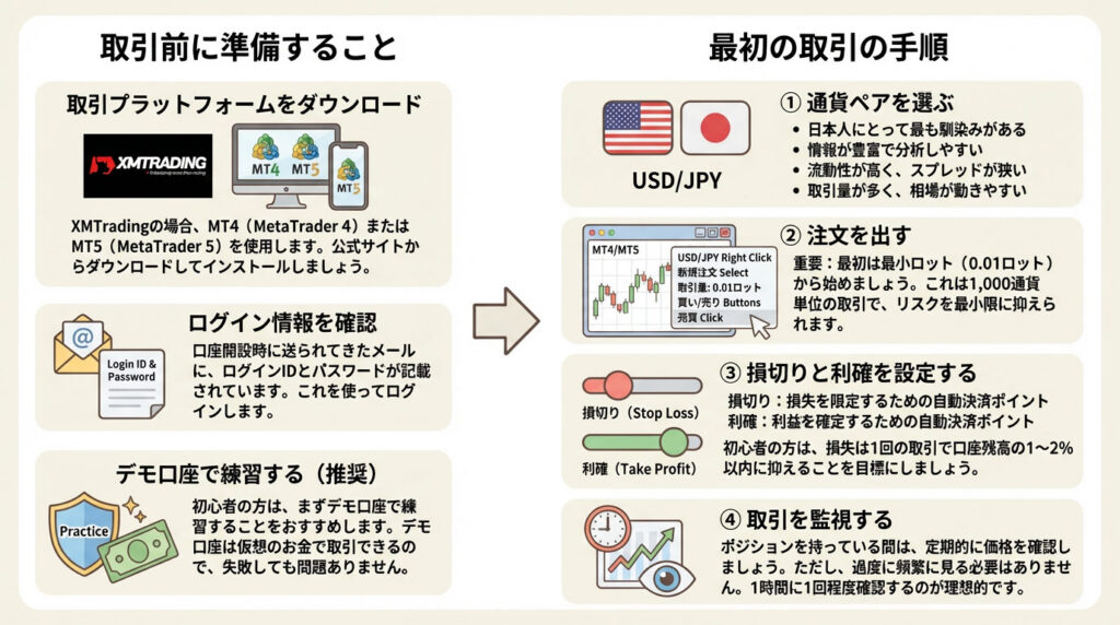 それでは、実際に最初の取引を行うまでの完全な流れを解説します。