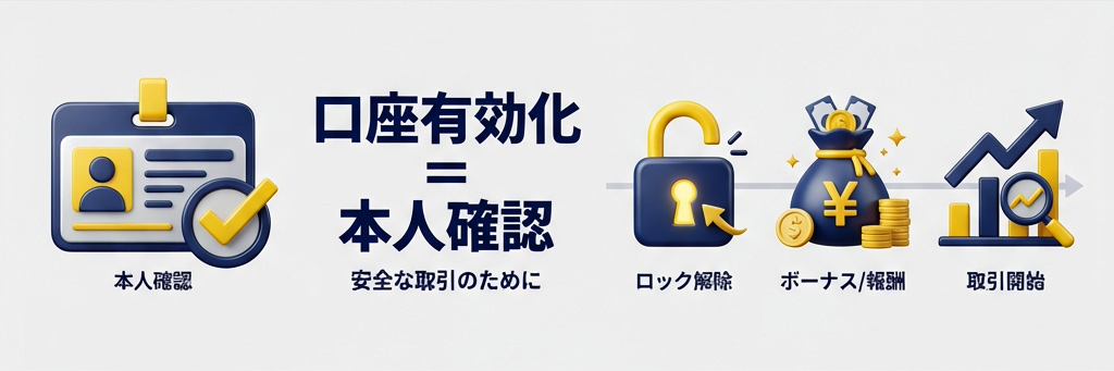 XMTradingの「口座有効化」とは、本人確認書類を提出して身元を証明する手続きです。これは犯罪収益移転防止法(AML/KYC規制)に基づく法的義務であり、投資家保護と不正防止のために必須となっています。
